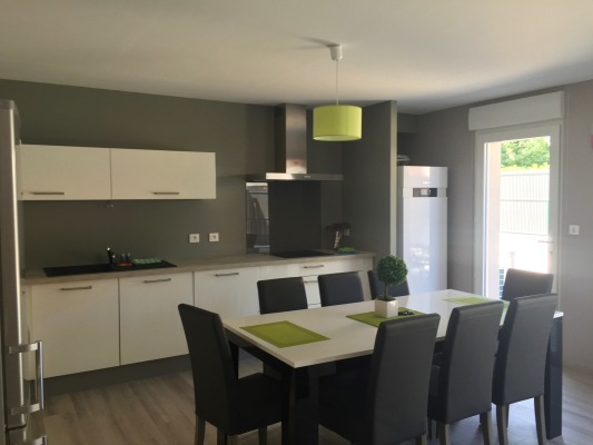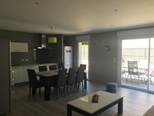 "La Fétuque Crin d'Ours" is a beautiful family home with modern and neat facilities. New construction in 2016 with PMR standards and new energies. Aerothermal heating. Exterior heat pump giving underfloor heating for the ground floor. Very appreciable to have warm feet.